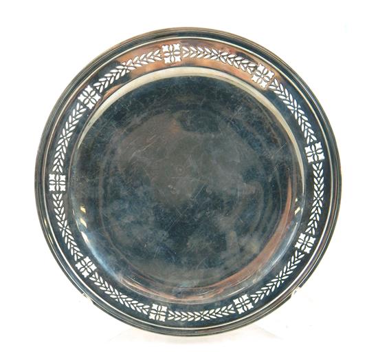 pierced rim with banded garland motif, hallmarked on bottom, expected surface wear including heaving scratching, 9 1/2" diam., 15.84 ozt.