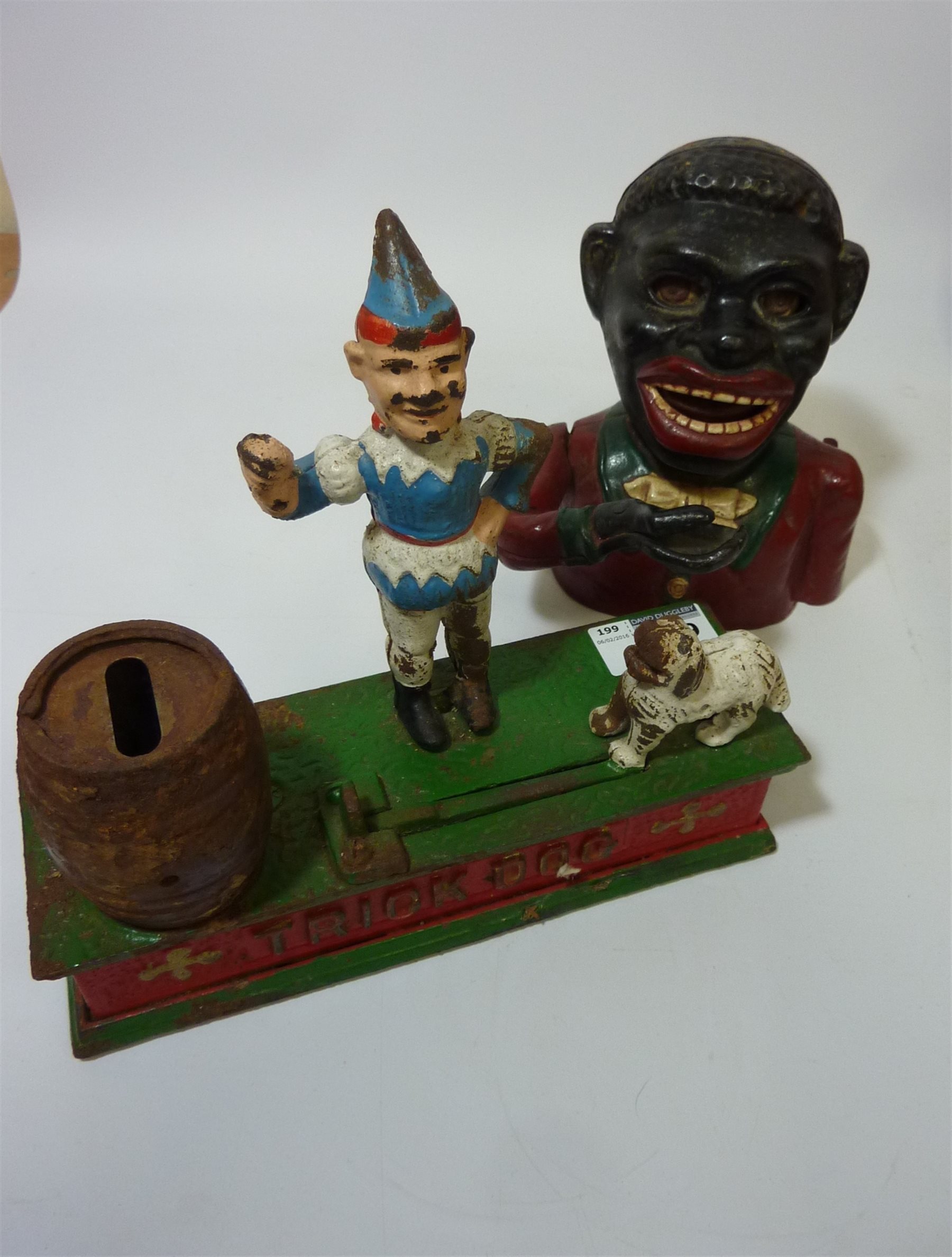 'Trick Dog' money box and a 'Jolly Nigger Bank' money box (2)