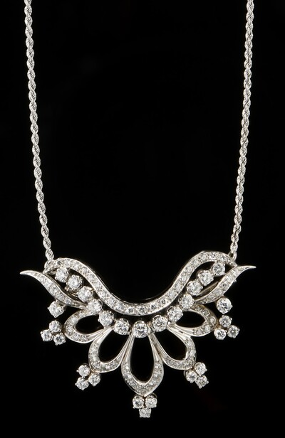 Twisted knot chain holding a brooch pendant set with diamonds (approx 2 ct)