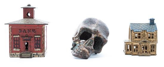each of architectural form, together with a cast metal skull