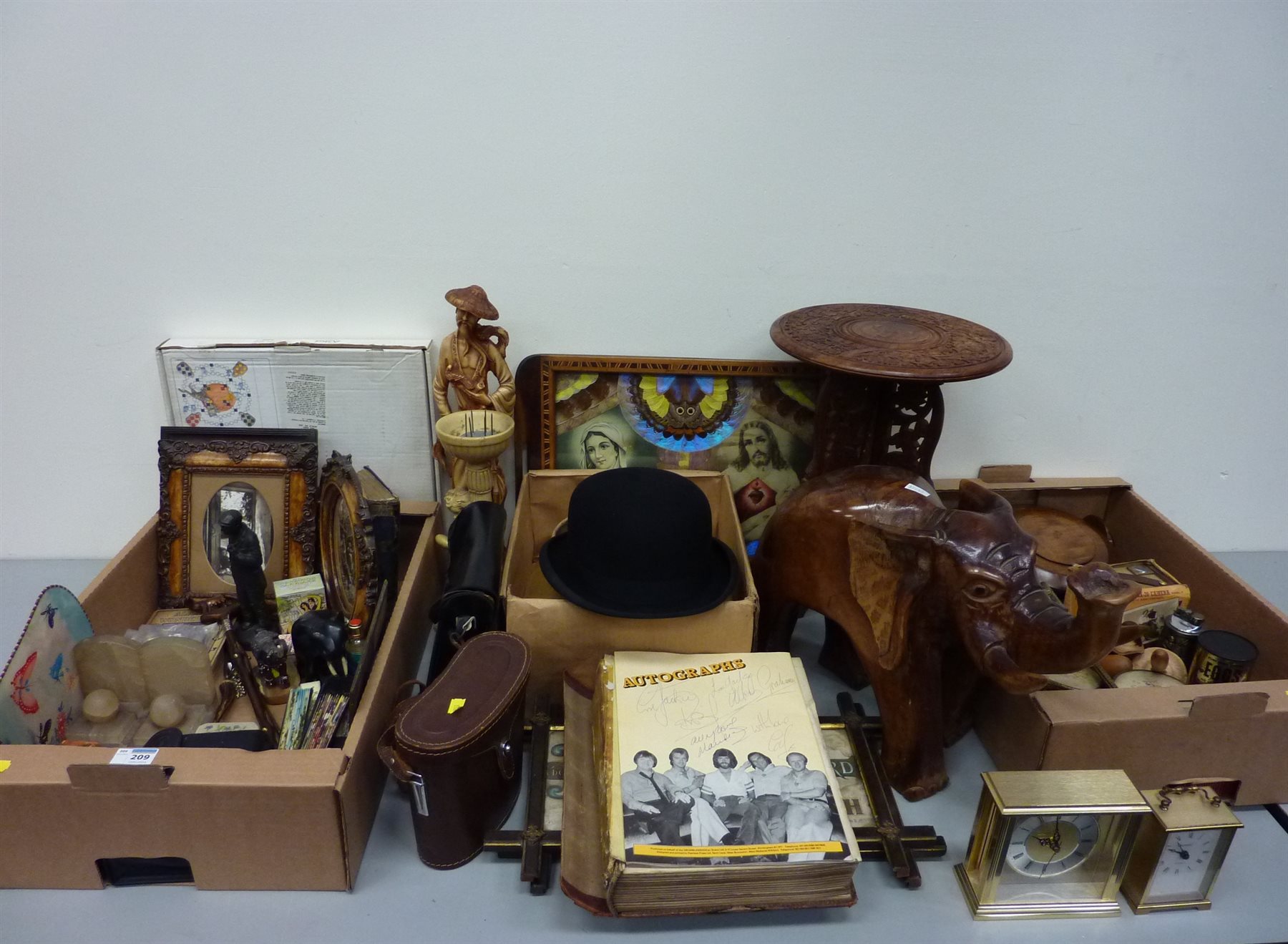 Two Frank Meadow Sutcliffe photographic prints, binoculars, Indian carved wood table