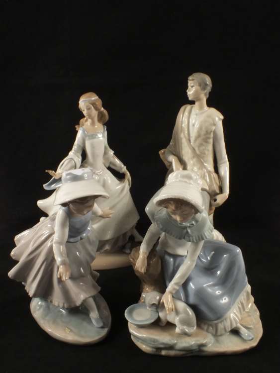 Two Lladro and two Nao figurines