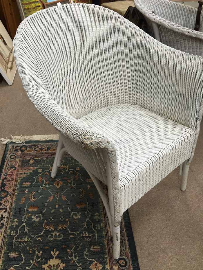 TWO LLOYD LOOM WICKER CHAIRS AND AN OCCASIONAL TABLE