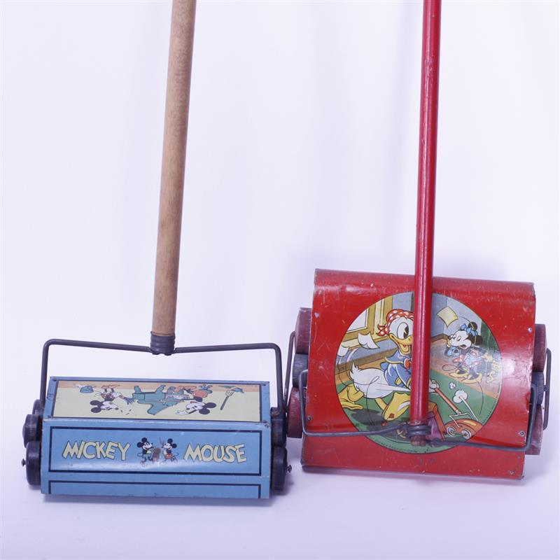 Two Ohio Art Mickey Mouse Tin Litho Toy Sweepers
