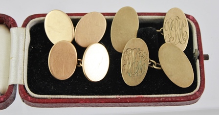 TWO PAIRS OF GOLD CUFFLINKS, of oval chain link design, one pair of 9ct gold, 7g. and one pair 15ct gold, 7g. cased