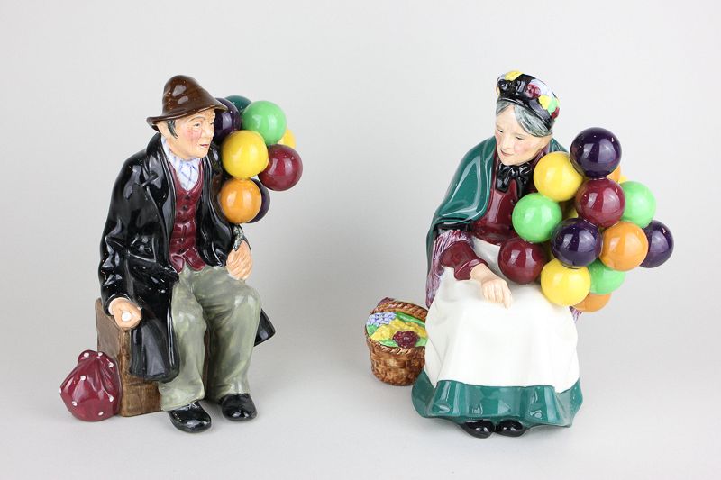 Two Royal Doulton figurines, The Balloon Man (HN1954) and The Old Balloon Seller (HN1315), tallest 19cm