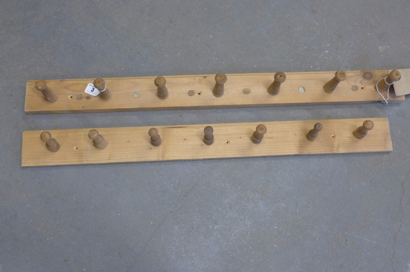 Two vintage sets of wooden peg coat hooks - 80cm, 86cm