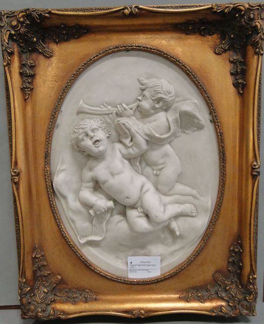 Väggrelief, märkt Evett England 1900, parian i förgylld ram 38x28cm, liten nagg