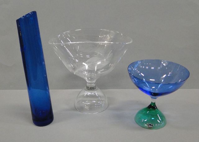 Vicke Lindstrand, Kosta 2st skålar på fot nr. 1692 & 52451 H14 & 20cm samt Monica Bratt, Reijmyre vas