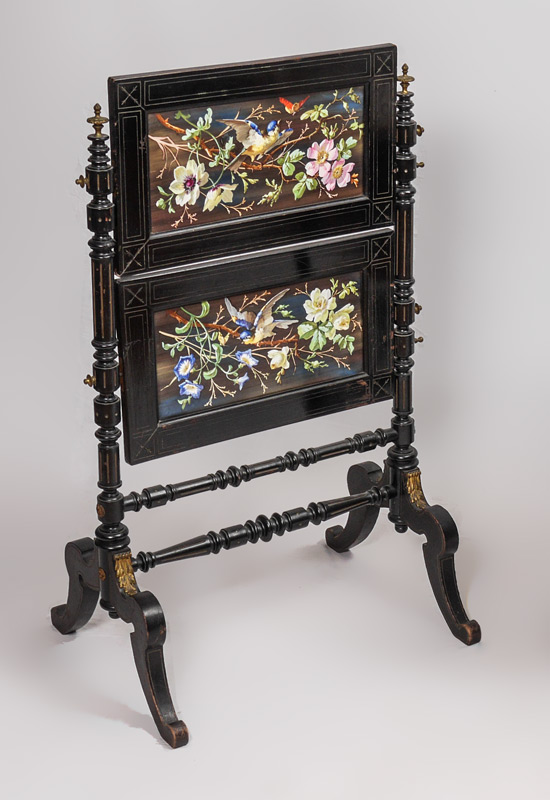VICTORIAN AESTHETIC MOVEMENT PAINT DECORATED FIRE SCREEN