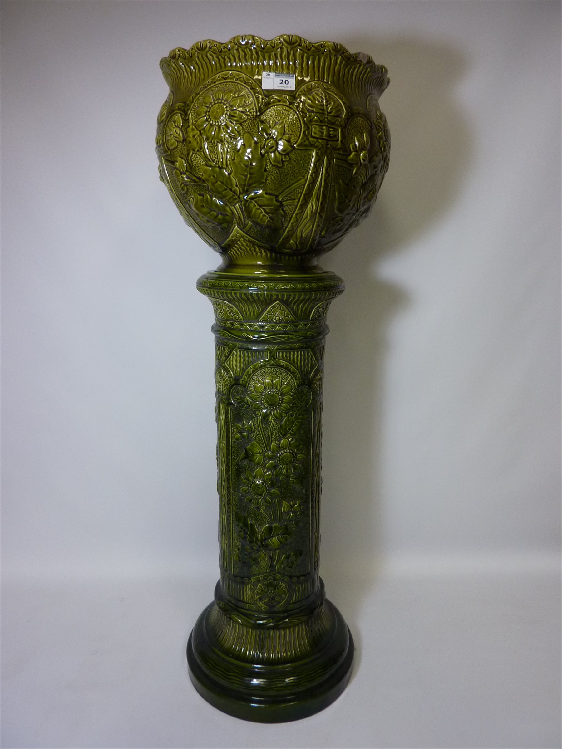 Victorian Burmantofts Faience jardiniere, impressed marks and numbered 1947B with stand, impressed 1948B