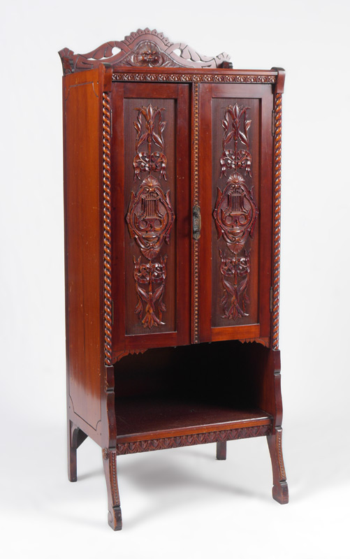 VICTORIAN CARVED MAHOGANY MUSIC CABINET