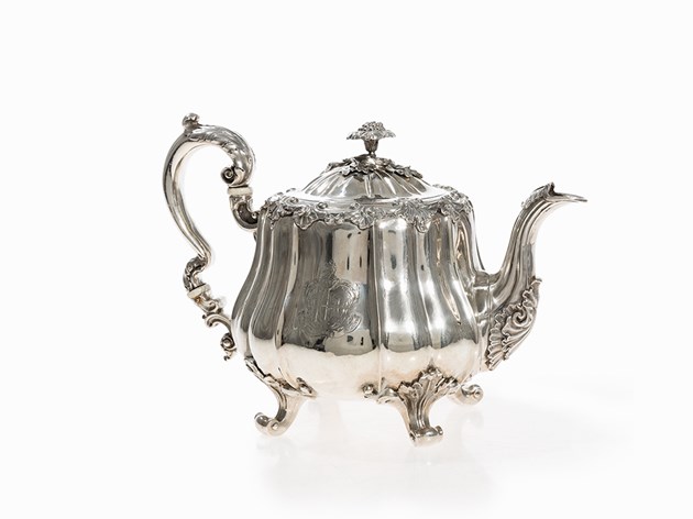 Sterling silver, embossed, cast and chased, Bone London, England, 1823 Manufacturer: Sebastian & Robert Garrard & Co. – silversmiths and former purveyor to the court Hallmarked with maker’s mark, standard, town mark, date letter and duty mark Additio