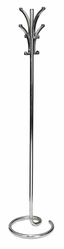 Rack American or Continental, early 20th century, polished chrome center post with four arms fitted with a hat and coat hook, circular chrome base, 65-1/2 in.
