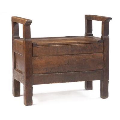 Wooden casabanco forming a stool with 2 armrests, on 4 straight legs