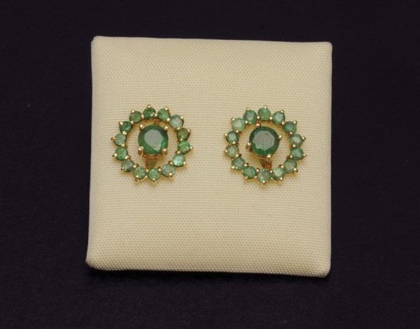 Earrings 18K yellow gold with emerald rosette. Snap fastener.