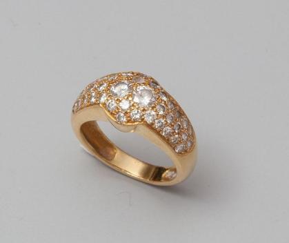 yellow gold ring ring 750 MM, centered in two brilliant paving brilliant, total: approximately 2 carats
