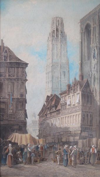 South side of the Cathedral Rouen; Market scene Bauvais, France