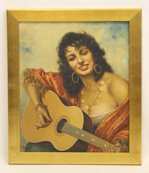 Portrait of a Gypsy Girl playing a Guitar