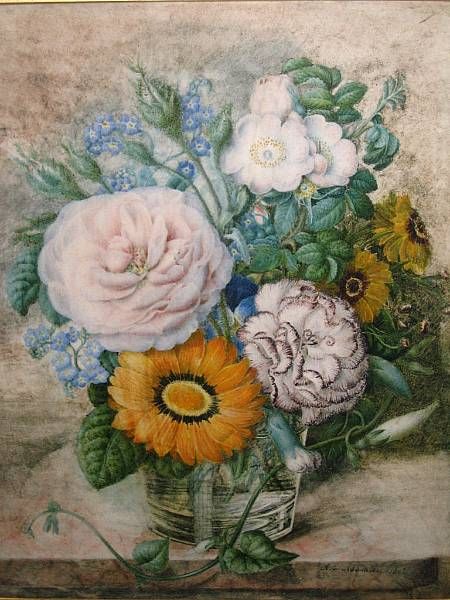 A still life study of flowers in a glass vase