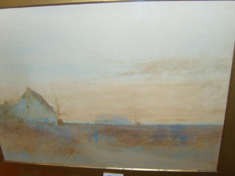 A country landscape with thatched cottages