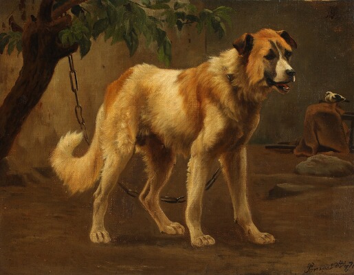 A potrait of a St. Bernard. Inscribed on stretcher A. Mackeprang