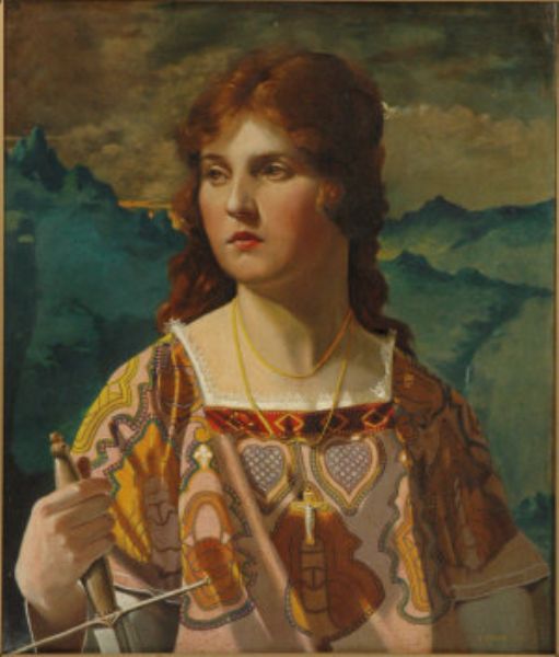 Medieval maiden holding a sword