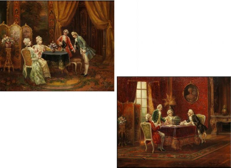 PAAR GEMÄLDE MIT ELEGANTER GESELLSCHAFT