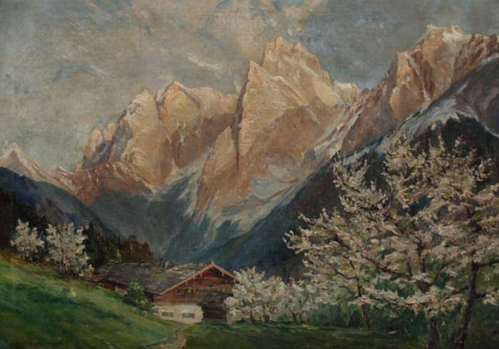 Kaisergebirge mit Pfandlhof ( bei Kufstein) im Frühling