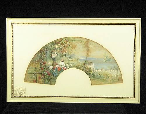 Watercolor on paper, fan shaped