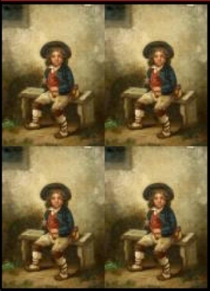 Auf einer Steinbank sitzender Knabe mit Flöte
