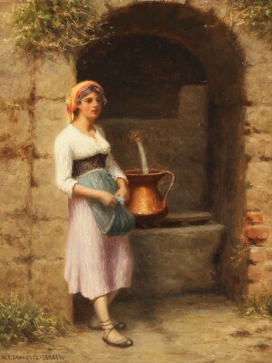 | A young Italian woman fetching water at a fountain | |