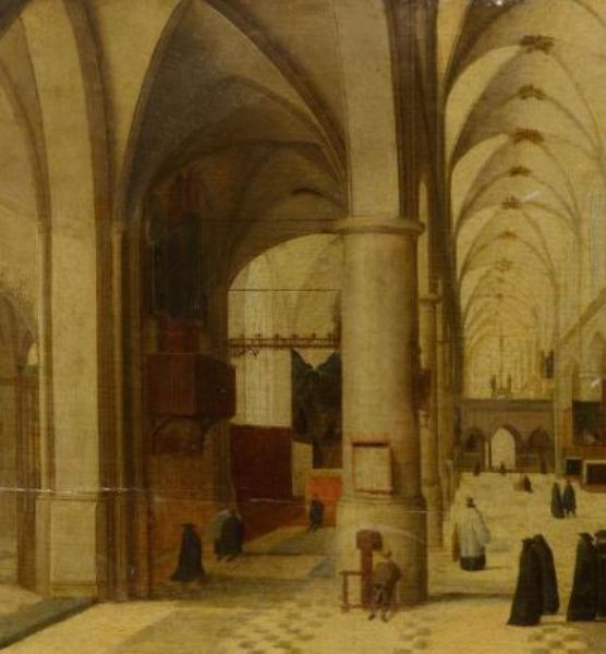 View inside a church with visitors