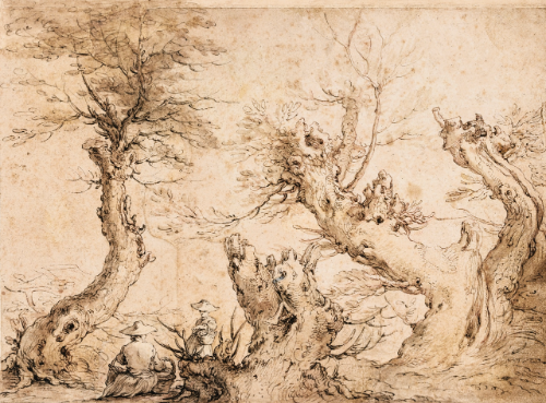 | LANDSCAPE WITH FOUR GNARLED TREES AND TWO RESTING WOMEN | |