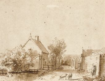 | Pen and brown ink, brown wash, brush and grey ink, pen and brown ink framing lines | |