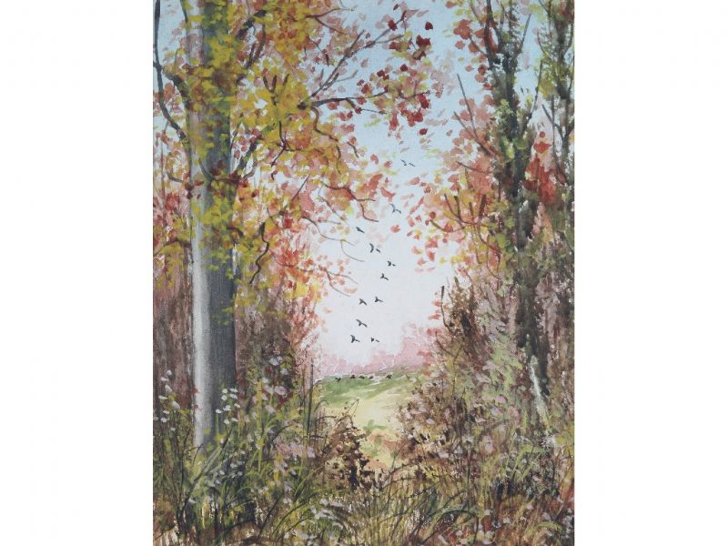 BIRDS ASCENDING IN A RURAL LANDSCAPE