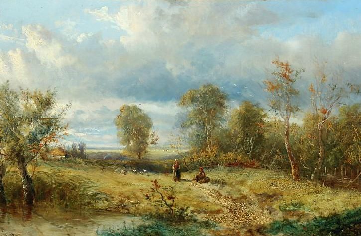 Landscape with women on a meadow.