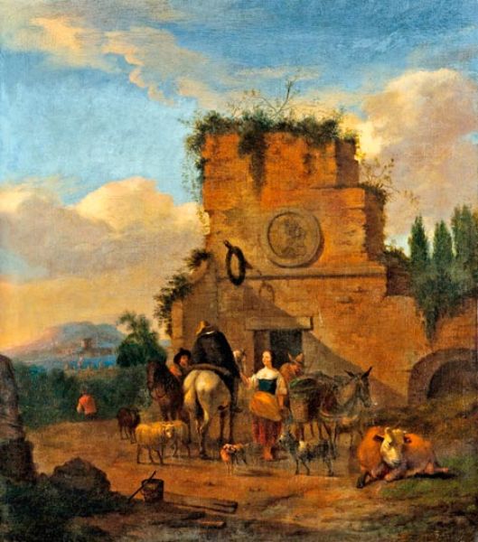 Italianizáló táj épületrommal és alakokkal, 1660 körül