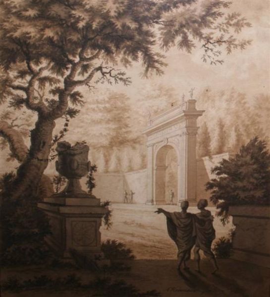 | Figures beside classical ruins | |