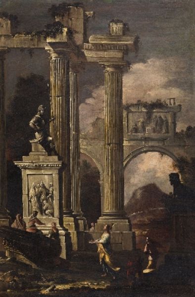 A PAIR OF ITALIAN LANDSCAPES WITH RUINS