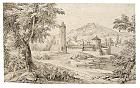 | VIEW OF A FORTIFIED ITALIANATE VILLAGE IN A HILLY LANDSCAPE | |