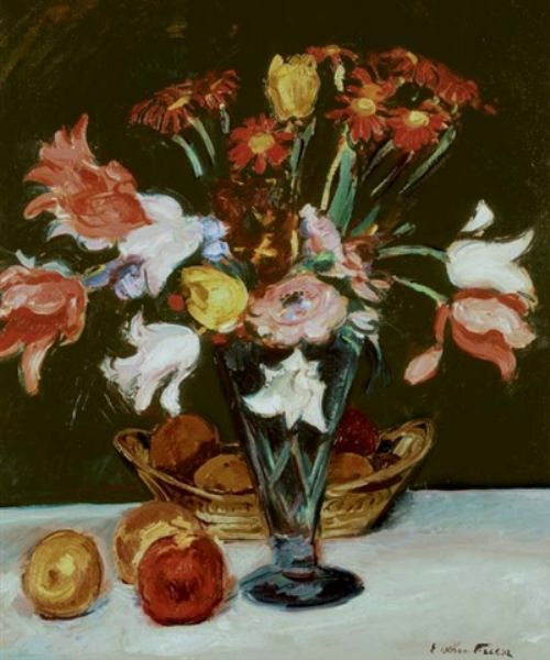 Fruits et vase de fleurs