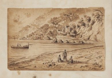 Veduta di Maiori con figura & Veduta di Maiori con pescatori
