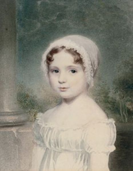 Portrait of a young girl, bust-length, in a white cap