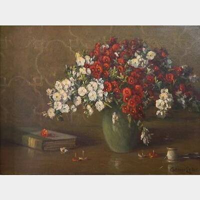 Still-Life of Flowers and Book- oil on canvas, signed Adam Lehr lower right, very good condition. 18 x 24'' | |