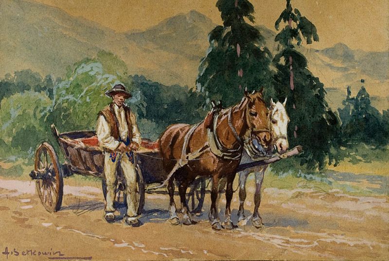 GÓRAL Z WOZEM ZAPRZĘŻONYM W DWA KONIE