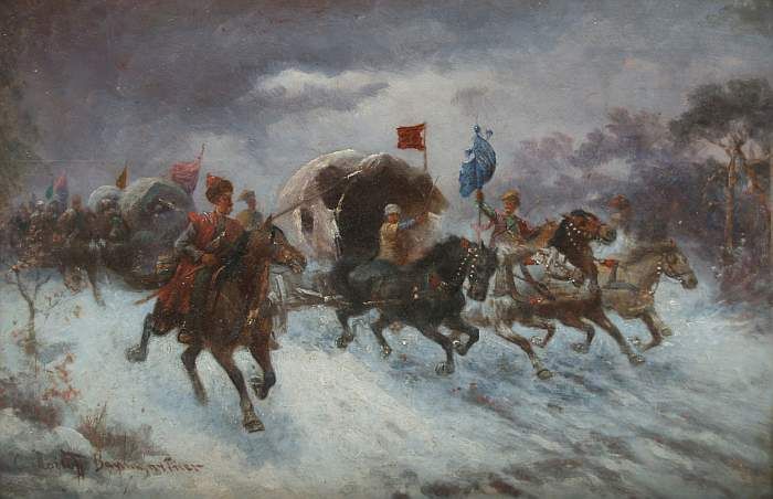 | Russischer Goldtransport in winterlicher Landschaft | |