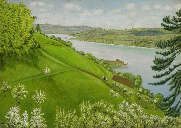 Untersee mit Steckborn. Frühlingslandschaft. 1944.