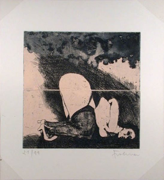 Kniender Akt mit Strapsen und hochhackigen Schuhen