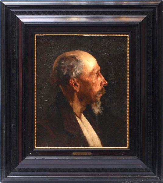 Profilportrait eines alten Mannes mit Bart vor grün changierendem Hintergrund